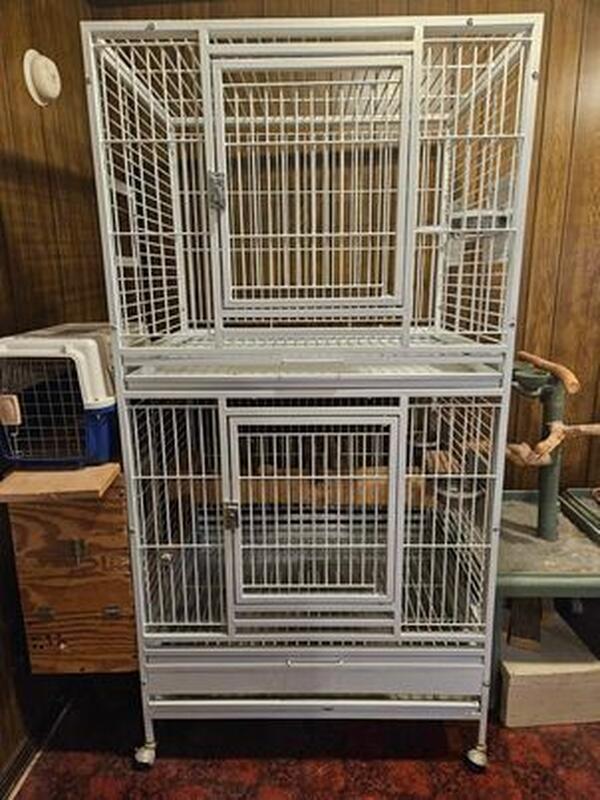 message jbirdsnow about this ad HQ 36x28 I think I can round up seed guards for it Tan. $700 Avian Adventure dome top. 28x22: $275 HQ Double Stack. White. Yes. All have all of the bowls and doors grates and pans. Has some rubbed off paint on the inside of the cage on the bars. NO rust! $550 California Dome Top. 24x20 No seed guards. HQ 2 Cages: Triple Stacks. 24x22. All bowls, holders grates and pans are accounted for. Great condition. $650 each. BIRDS THAT WE HAVE AVAILABLE 2 Congo African Grey Babies: FEMALE IS SPOKEN FOR: Male hatched Oct. 30th and Female Nov. 4th. 2025. Can only go to a new home when weaned. Now excepting deposits. $6500 Quaker Breeder Pair: Male Dark Green: Female Lutino. 2 and 3 years of age. Proven and do take care of their babies. $850 June hatched Quakers: 2025: ALL leg banded and come with DNA Certificates: 2 Male Blue Opaline: $550 each 2 Cape Parrots: Male and a Female. 3 years old. $3000 each. PETS! message jbirdsnow about this ad |