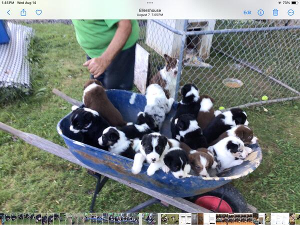 message annabelle about this ad Silvers Border Collies. Brown/white/fawn, black/white/tan, and blue Merle tri coloured purebred border collies. Born in the family home on July 7 and July10, (2 litters they will come with a vet certified health certificate, 1st vaccines, dewormed x 3 and will be microchipped. They will be registered with the Canadian Border Collie Association and come with their registration papers. By the time they are ready to go to their forever homes, they will have been well socialized by children and other dogs. Border Collies are gentle, intelligent and easy to train. Considered the smartest dog breed on the planet. The puppies will be ready to go to their new home by August 31st and September 3rd. A happy, healthy fur baby for your family to enjoy for many years to come. They come with a starter kit of Purina puppy chow, a toy, treats and a collar. My email is franncrossley@gmail.com My number is 902-757-3603 or 902-306-2853 Welcome to come view the puppies. My address is 140 Williams Road in Ellershouse, Hants County, N.S. My email is franncrossley@gmail.com message annabelle about this ad |