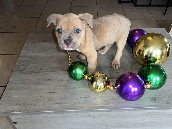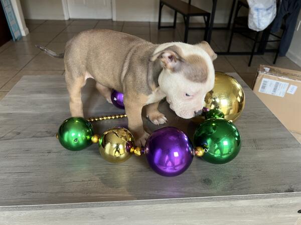 message frrbg7171 about this ad 4 mo. old American Bully puppies ABKC registrable, vaccinated, ready to go. Comes with puppy papers. Have both parents. Deposit required |