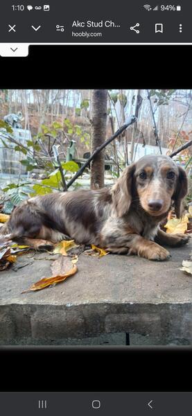 Akc Stud Chocolate & Cream Tan Point Long Haired Miniature Dachshund -- 500.00