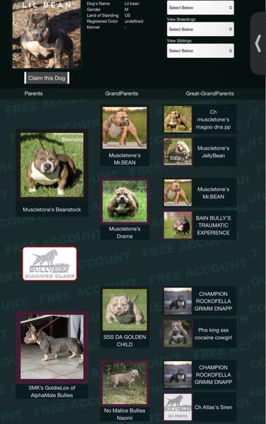 message theone94ebbullies about this ad "Bean" is A 2 Year Old Extreme Pocket bully He's The Son Of World Famous "Muscletonbully's Beanstock" Breed to a GoldenChild Daughter. Being "13.5 inches tall weighing 80Lbs He Give you Extreme Features While Also adding Color To your program. Massive neck, short back while sporting a Crazy Head piece Beans" Fee is currently $500 lock in @2500 Or $1500 Paid in Full Text or Call me @ (586)208-1843 for more info. |