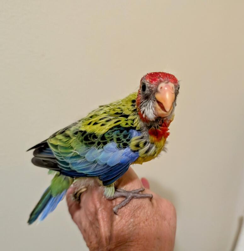 Hand feeding Rosella parrots. Super sweet birds with a very soft song. Located in Deltona