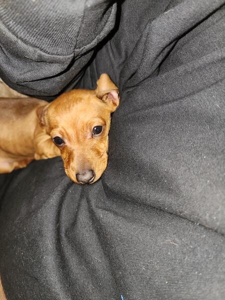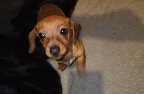 message thnrd449 about this ad Here is a male red brindle daschund, just turned 10 weeks old ,very well behaved very smart Hes gonna be around 8 pounds I think |