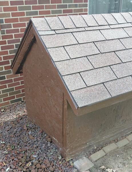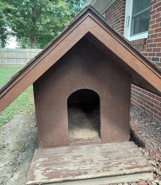 message tekgrandma about this ad My Belgium Melnois Shephard used this dog house about 6 months, I bought used I put in a pet door to my home so she quit using it Measurements are shown, (im not a artist I paid $100 for it & that is what I'm asking for it. I put a sealant on it & painted it little porch is wore off it will take at least 3 people to load it VERY HEAVY |