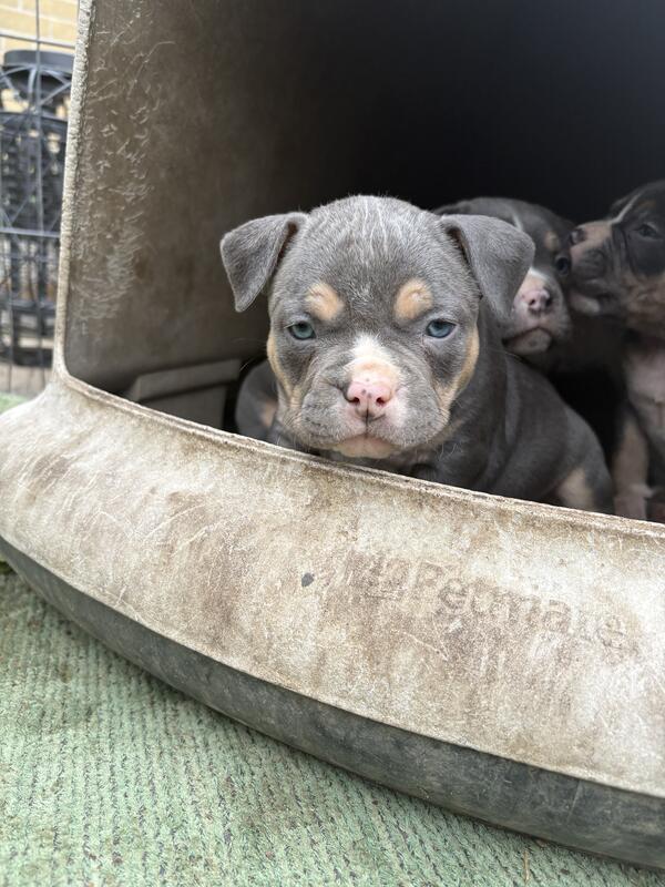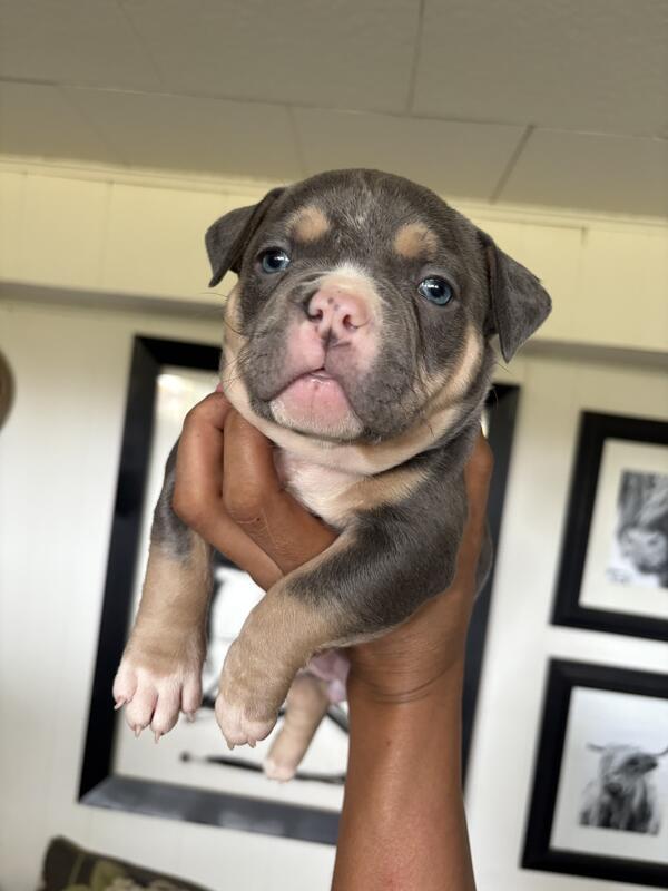 message the6bullies about this ad Female & male Micro & pocket Blue Tri, champagne, lilac Male ;4 Blue Tri SOLD pie bald available * Lilac ghost marble lilac SOLD Lilac Tri. SOLD Female; 4 Lilac ghost SOLD Blue Tri Blue Tri available * Blue marble SOLD Intact Ear crop available for extra Parents on site Good with kids and other dogs No issues ,great bone and temperament Weight 40-50 lbs approx 15 micro /small pocket (medium) Born Aug16/17 2025 Ready in October Bloodline : ( sire)Beastro. Dax .razors edge .phenom. mr miagi .judge .Apache (Dam)chili .veneno .rebel .phenom .dax Beastro. Dax .razors edge .phenom. mr miagi .judge .Apache Dont forget to check us out on instagram @the6bullies , Pinterest ,Facebook! Prices starting at 1k - 3k |
