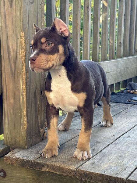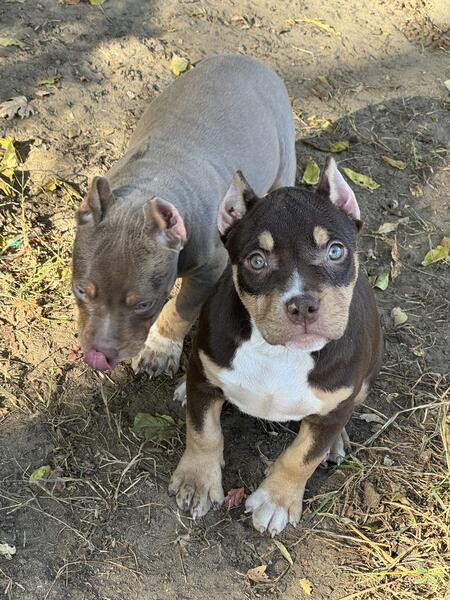 message castlesbullies about this ad 12 week old American bullies. chocolate tri female. Lilac tri with ticking male. utd on shots and dewormed multiple times upon leaving. Abkc papers. $950 Text 269 6809423. |