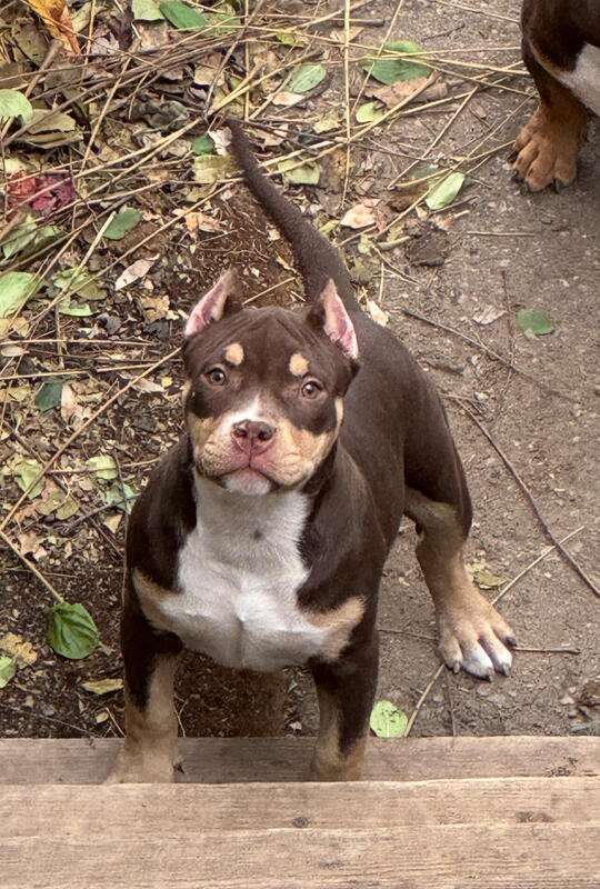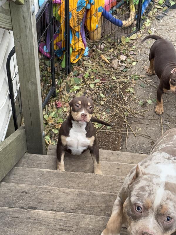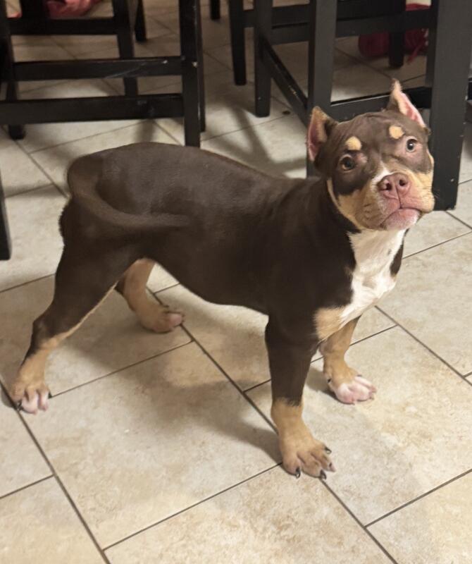message castlesbullies about this ad 6 month old American bully chocolate tri female utd on shots and dewormed multiple times upon leaving. Abkc papers. $700 Text 269 6809423. |
