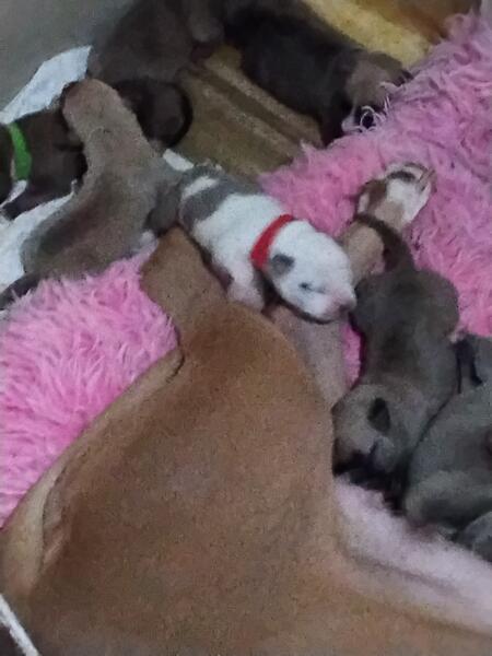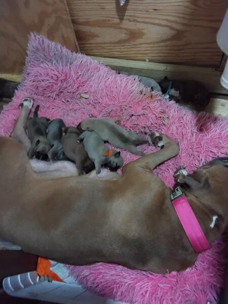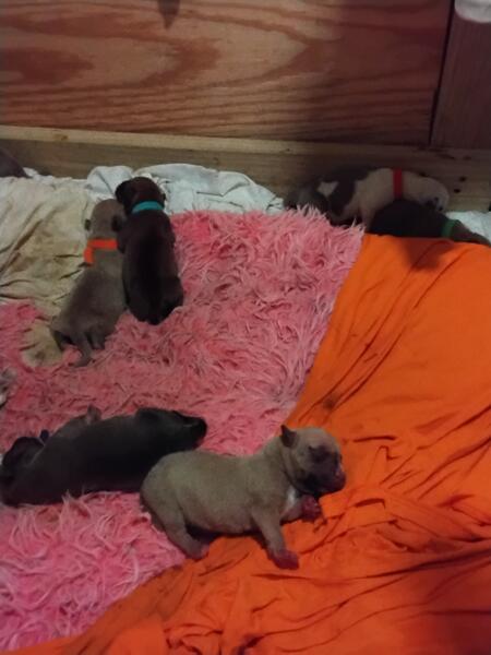 message waggywag11 about this ad Born August 16, 2025, ABR registered. 3 WEEKS OLD Am Bully XL/ Staffordshire terrier xl bully hybrid puppies lilac F champagne F red M Tri color M fawn F sable M pie bald M blue F b7 GIRLS 4 BOYS |