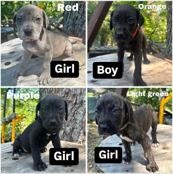 message tsantiago about this ad Litter was born February 2 ,2025. Males and females available. Blacks $500.00 merels $600.00 1 harlequin $700.00 they will be ready to go home to new homes between 6 and 8 weeks old. They got 1st shots April 14,2025. They are eating hard puppy food and they are completely weaned from mom. |