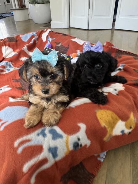 One male one female available vaccinated and ready for pick up. Mom is 7 lb toy poodle dad 5 lb yorkie