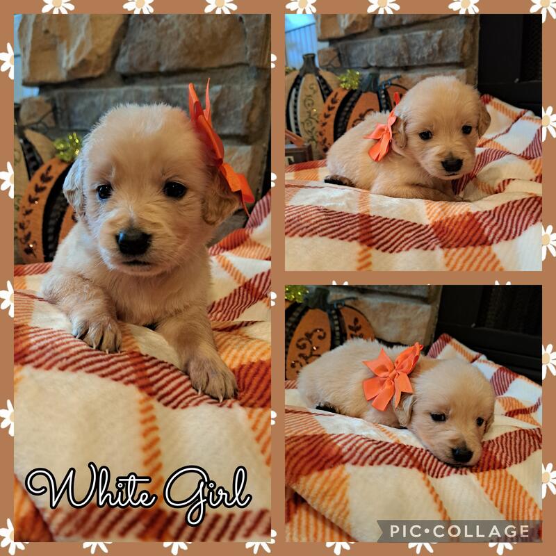 message ahanks about this ad Golden Retriever Puppies. 4 males and 4 females available. Almost 5 weeks old. Will be ready for their furever homes on Nov. 23rd. Will receive first round of shots at the vet at 6 weeks old. |