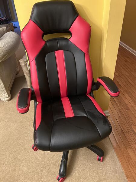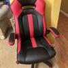 red and black chair can be adjusted in height not used much.