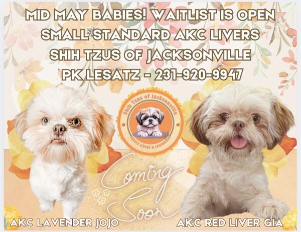 message pipnpique about this ad AKC Liver and Lavender Small Standard SHIH TZU puppies for adoption. $2300. Pet only. Gorgeous colors and temperaments. Born May 14 / ready for new homes July 14. Jacksonville, FL. Applications available at shihtzusofjacksonville.com Text 231.920.9947 for more information. |