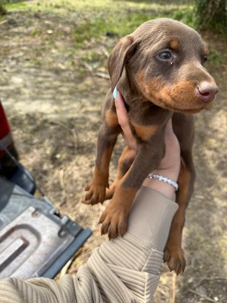 message jkdobermans about this ad AKC Doberman Puppies. Currently 6 weeks old, first round of shots and dewormed, tails docked, dew claws still intact. 3 Red females, 1 Black female, 1 Black male TEXT- 302-487-9360 DOVER DE |