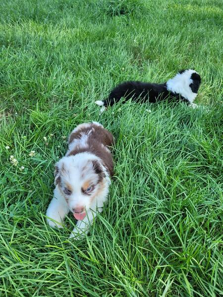 message trinityd about this ad 2 male & 1 female standard Australian shepherd puppies. 10 weeks old on 8/31. Black tri boy Red merle boy Red tri girl Both parents on site and older adult sibling from previous litter to see tmperment/personality. Pups are being flea/tick treated with oral preventative, had 3 dewormer treatments, and had the first vaccine shot in the series. You can text for additional details/questions 317-748-0955 |