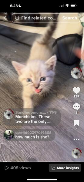 message kittenrehome about this ad 2 munchkins One fluffy Himalayan lined boy two thousand One lynx point girl one thousand five hundred Parents genetic health panel clear Vaccines and vet health exam done San Diego local pickup only Can be held for xmas 2 year health guarantee Text six1nine8 six6two6 eight2 |