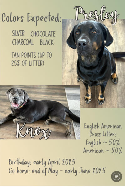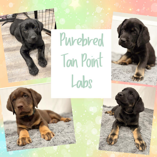 message lovingloyallabs about this ad Purebred AKC Tan Point & Brindle Tan Point Labrador Retriever Puppies 8 weeks old Located in Roberts, Wi (30 miles east of St Paul/Minneapolis, Mn on the MN/WI border) Puppies are a 50/50 English/American Cross. Dam is English lines & Sire is American lines. Born 4/8/25 4 males available: 1 tan point chocolate male 2 tan point black males 1 brindle tan point black male *Ready to go *Raised in my home with ESI, ENS and socialized by young kiddos. *Health Tested Parents *Vet Checked *Microchipped *Dewormed *Dew Claws intact *Sold with AKC Limited Registration (Pet Only) *Licensed and Inspected Breeder by the State of Wisconsin Tan Points in Labs: The tan point markings is a recessive trait that can only happen when the puppy inherits 2 copies of the tan point gene. This is very similar to a litter producing dilute colors (silver, charcoal and champagnes - those puppies also inherit 2 copies of the dilute gene Some people feel that these traits (tan point and/or dilute) are a defect but I think they are beautiful and unique! The majority of the people I place my puppies with are looking for loving family companions and occasional recreational hunters. This litter has different intensities on the markings from light brindling to strong solid tan points! Please visit our website to fill out an application to adopt one of these pups: message lovingloyallabs about this ad |