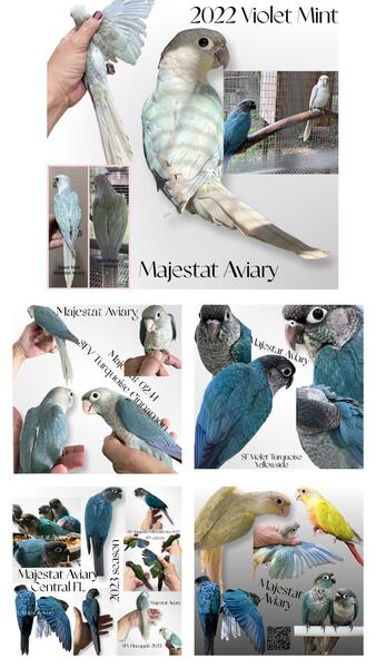 message majestataviary about this ad We are delighted to introduce the stunning violet green cheek conure to our esteemed family at Majestat Aviaries, located in sunny Florida. With great enthusiasm, we mark our fourth year and third generation by proudly presenting them as part of our healthly flock, now available to you The 1st in the USA to create Violet Dilute Turquoise Feel free to contact at Majestat Aviary in central FL. Find us also on Facebook under Majestat Aviary Single Factor Violet Turquoise starting at 1000 depending on splits Double Factor Violet start at 2000 Violet Turquoise Dilte start at 3000 Get on the 2025 list for babies, Double Factor Babies hatching now- Limited pairs may still be available we may consider trades. Shipping Via Delta airlines only or local pickup |