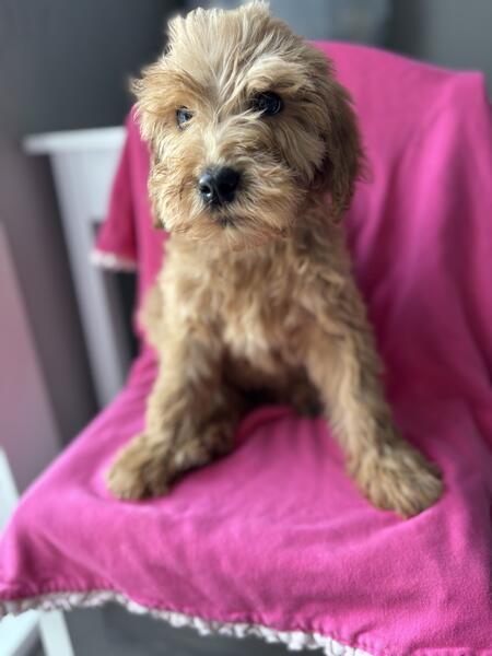 message doodlesforhome about this ad Female Goldendoodle Glitter. 10 weeks old. Started on vaccines and dewormed. Ready to go to her forever home today! Please message on here for more information or to meet in person! |