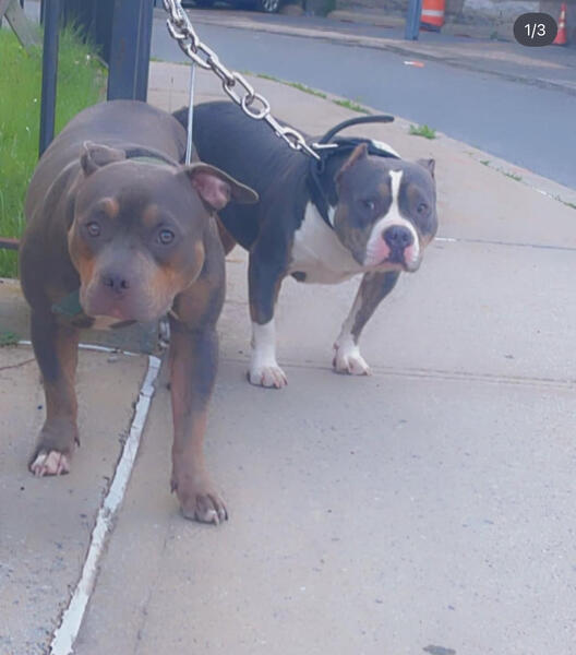 4 year old female bully she was had 1 litter, she gets along with other dogs and very playful