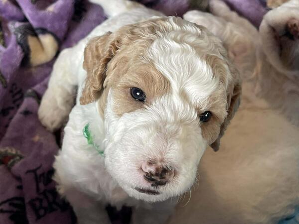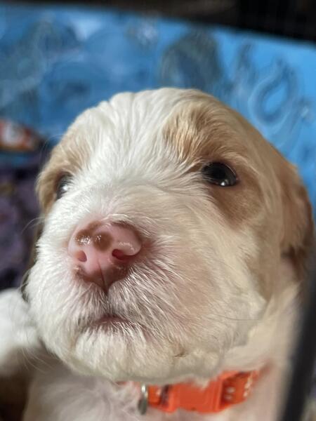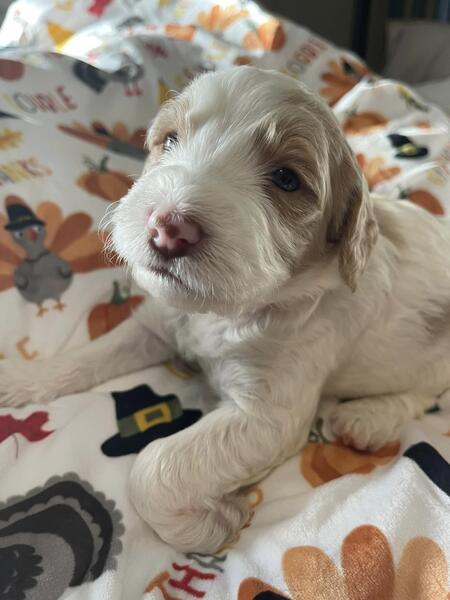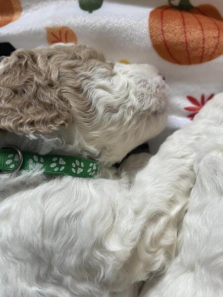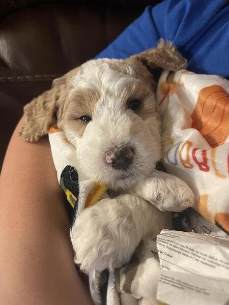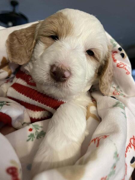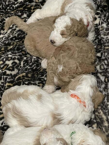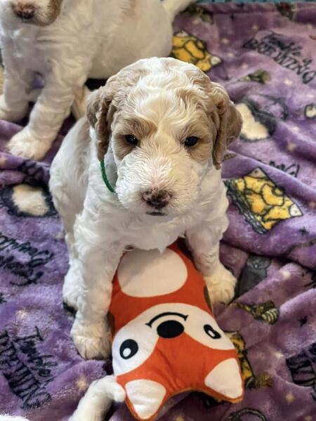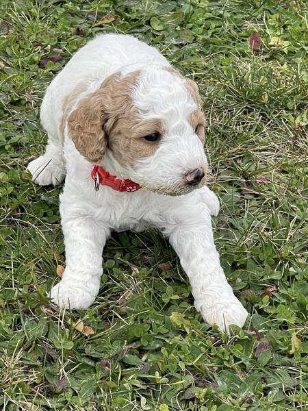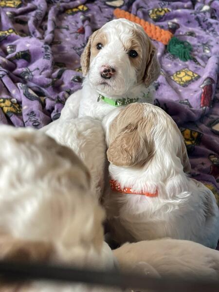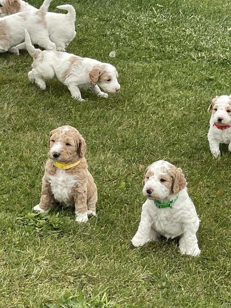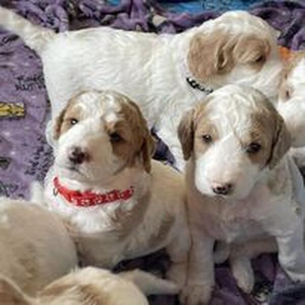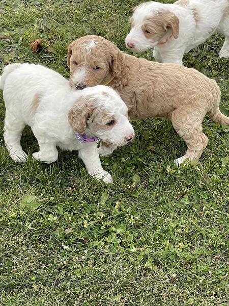 message nclwl1412 about this ad F2b Mini/medium goldendoodle puppies DOB 10-18-2024 Ready for furever homes December 13,2024 Will have 1st shots, deworming, vet check with 1 year health guarantee. Parents health tested. Allergy friendly. Family raised pups well socialized pups, Doing great with potty training. These pups are loveable, loyal, smart and cuddly! Red and apricot parti. Expected weight around 35 pounds. 7 pups available, 4 males and 3 females find us on facebook Bambach Doodles |