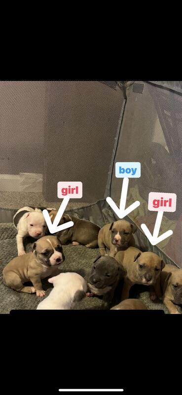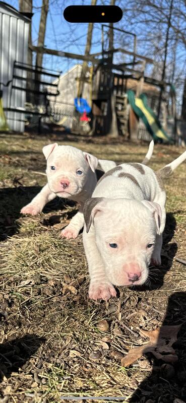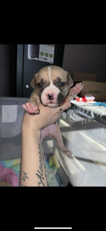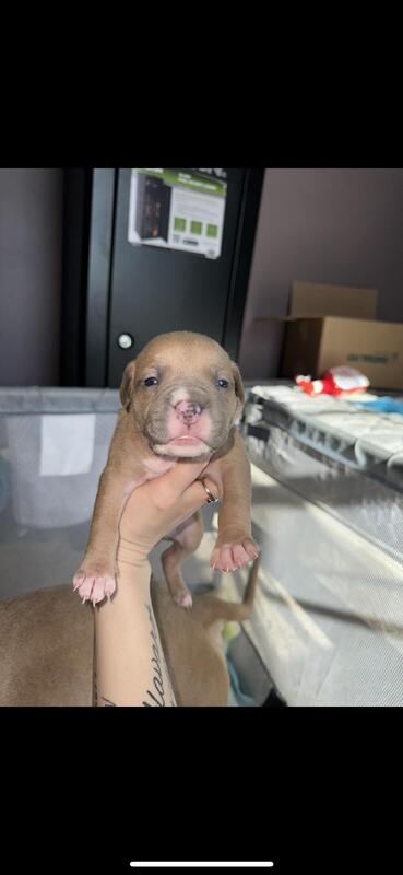 message tmnkntt3wt5 about this ad I have 4 pups left out of the 9. These pups are expected to be about 60-80lbs. Dad is an XL bully. Both parents have rights of ABKC registration, but unfortunately lost moms application of registration so we never were able to register her so these pups are without a D-A-M number so cant paper the pups, but the mom is DNA and health tested as a back up. They will be dewormed, vet checked, and have their 6 week shots- Parvo & distemper. Pictures of parents below as well. Also, these pups are worth the price so serious inquiries only! Pups wont have ear cropping, but if you want, we can talk pricing. These pups will make great family dogs, they have been socialized very well already and with small children. price obo |