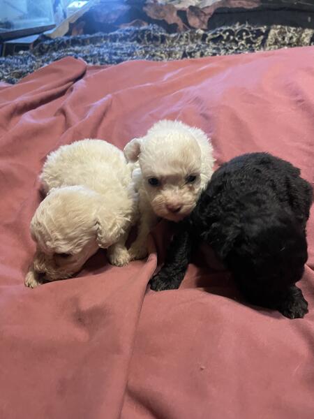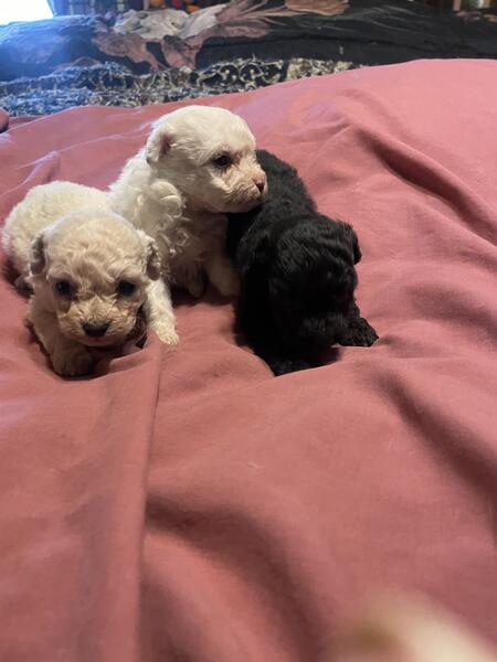 message priness338 about this ad y toy poodles were born on April 5, 2024 There is three girls and one boy you will see three girls together and one boy by his self in the pictures they do have a tail dock they will have their first shot and be wormed they will be ready around the end of May 2025 serious inquiries, only taking deposits 336 715 6941 please dont waste my time |