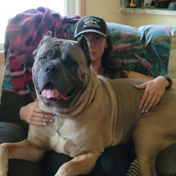 message lafamigliatartaglia about this ad Mr Blu 160lbs Blue Fawn STUD embark verified full blooded Corso with alot of champ red in his lineage. Very thick large bone massive block head puppies are large. Female to brought to him 3 time breeding EOD. Pic of male and female are Mr Blu parents. |