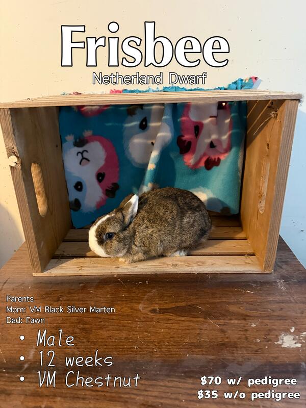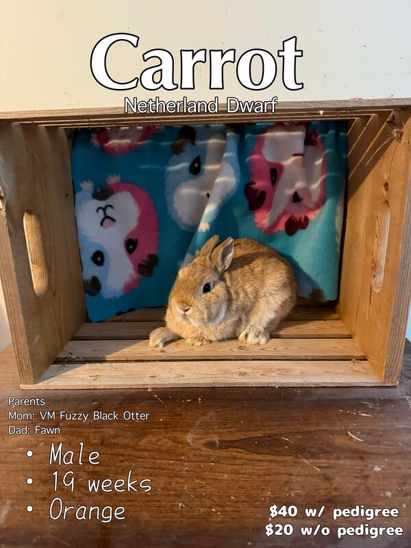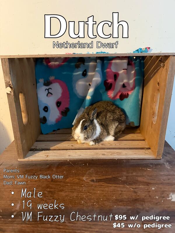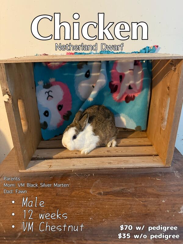 message bunbunminihobbyfarm about this ad 7 total buns looking to be rehomed. 5 males, 2 females. All very friendly. Small rehoming fees apply. 5wks all the way up to 19wks. Please message for more info. |