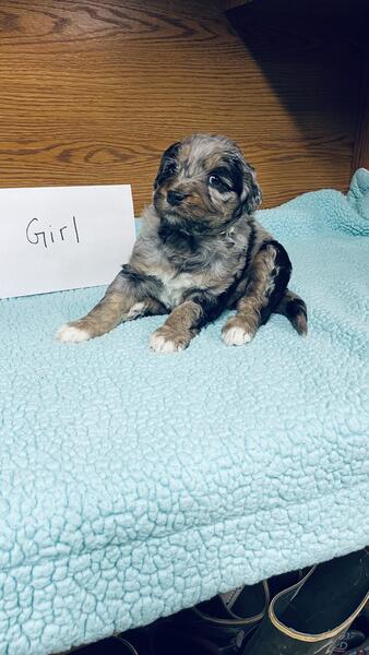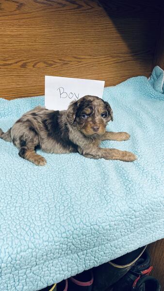 message rnrchm6739 about this ad We have 1 female and 3 male Aussiedoodle puppies. Verity of colors, some have short tails and some have long tails some have blue eyes and one has a blue and green. Mom is a Merle standard poodle and dad is a tri Australian shepherd. They will be 8 weeks Feb 23rd. We are located in SE Iowa. |