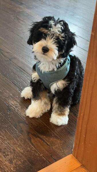 message yandrea2 about this ad Teddy is 7 month old mini bernedoodle He is looking for new home he is trained to go potty on pee pads. Medium size dog. Has current vaccines. He loves attention and likes to play. |