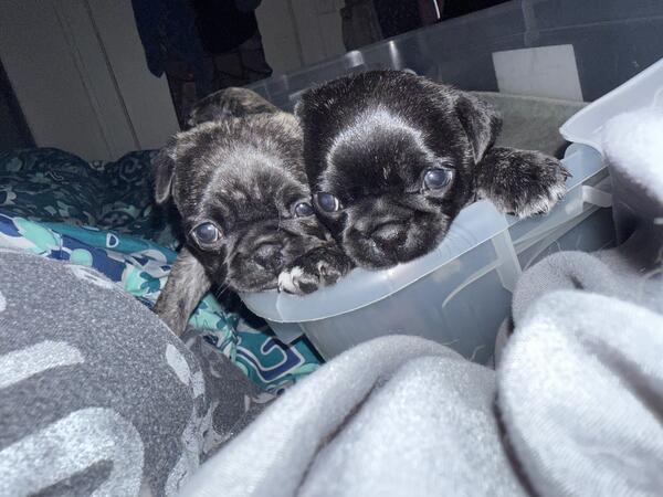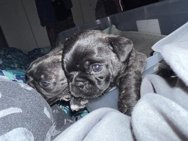 French bull dog/ pug mix 3 females eight weeks old first round of shots and wormed