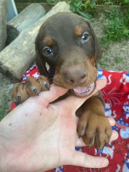 message rumorsdobermankennel about this ad AKC reg parents health tested 15 week old males available with ears cropped younger litter available as well $2000 with papers $1500 without message (260)701 2581 for more information |