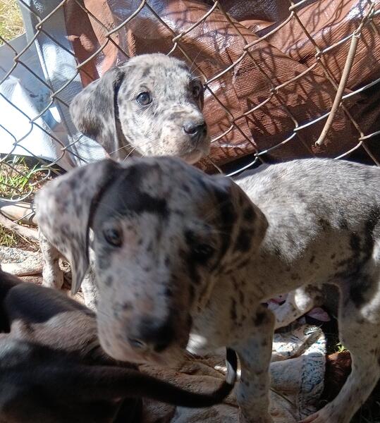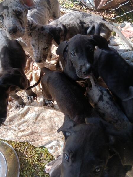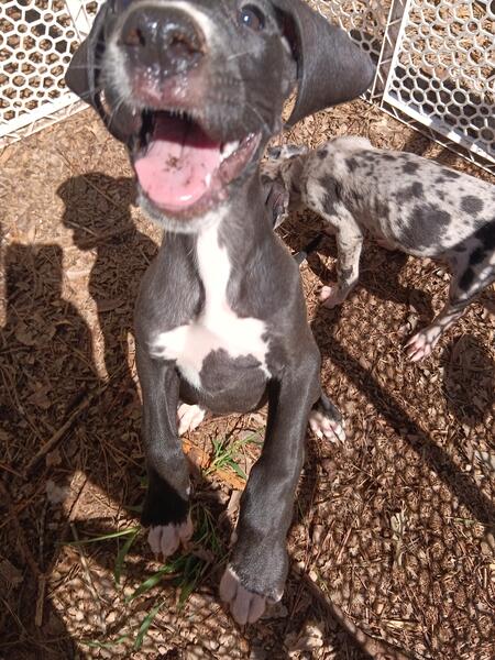 message onekjb about this ad Beautiful litter of 11 black with white markings (6) and merle (5) purebred great dane puppies. These puppies are meant for quality pet homes. Papers are not offered. Parents are on site and eager to meet you! I have plenty of references if needed. Located in Comer, Georgia. Born on June 22nd. All 11 are healthy! There are 8 females and 3 males in the litter. |