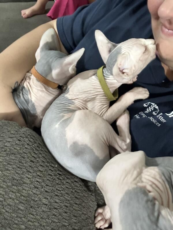 message sphynxlover83 about this ad We have a litter of adorable, very sweet, and loving male Sphynx kittens looking for their forever homes! Breed: Sphynx (Hairless) Age: Will be 12 weeks old on Sept 9 Health: Vet-checked & up to date on shots Price: $800 Boy $1500 Girl Sphynx cats are truly one-of-a-kind affectionate, playful, and so much fun to have around. Dont miss your chance to welcome one of these amazing kittens into your home! |