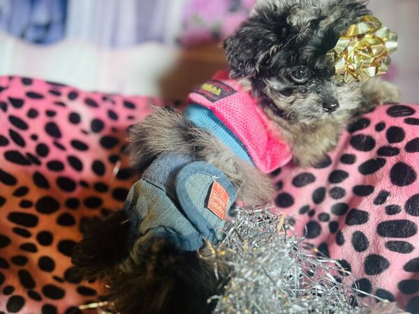 message divamoiselle about this ad Highly desired Pomapoo F1 generation, hypoallergenic, non shedding , teddy bear face , short legs , plush coat thats hair not fur . The beauty and unpredictability of the merle coat pattern has shown to be highly desirable to dog lovers and fanciers alike. Shot record Health guarantee Health contract Health insurance free for 30 days Dew claws removed Tails are docked To view her and all she comes with schedule a consultation for 30 - 42 mins . Youll enjoy it . |