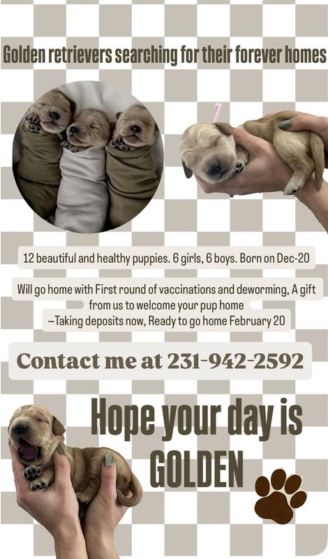 message theburkholders about this ad 12 beautiful and healthy puppies. 6 girls, 6 boys. Born on Dec-20 Raised with love right in our home, our cherished puppies receive constant attention and are extensively socialized daily by playing with our children. They are happy, content and ready to become a loving and loyal companion for your family. Both parents have the classic sweet, gentle, and loyal Golden Retriever temperament. Will go home with First round of vaccinations and deworming, A gift from us to welcome your pup home Taking deposits now, Ready to go home February 20 Text Angela 2319422592 An investment of years of happiness and unconditional love. |