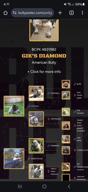 message mmbullyz about this ad If add still up she's still available so don't Contact me asking if female still available and asking for 100 pictures and videos window shopping wasting my time. PLEASE BE CASH READY WHEN YOU CALL I have a very nice female for sale 2 and a half years old can come with a stud credit if you would like it's to a Jersey devil son you just pay the remaining amount of the fee. shes a GSB lil timmy daughter ABR PAPERWORK IN HAND hade one litter of pups so you should know shes good on having pups great mom and good around kids and animals nothing wrong with her just Wanna bless someone with a very nice female moving on to something else thats it she dropped 7 nice pups for me and ready to Turn someone else camp up ped and pictures are posted she's do to come into heat anyday now get at me if youre trying to win Priced at $2,500 tap in 334-845-0243 |