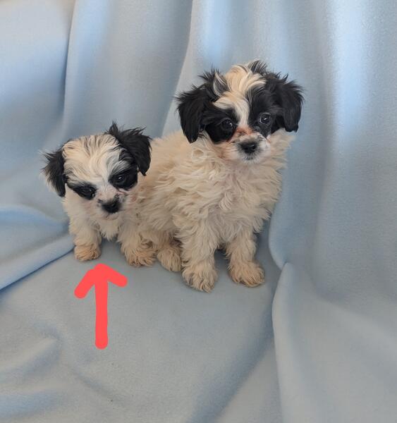 message runiquepups about this ad Extra Tiny black and white male. Pictured with his litter mate brother. DOB: 11-06-2024. Has had 2 sets of his puppy vaccinations and deworming. He has been examined by a licensed veterinarian. Declaws have been removed for grooming purposes. He comes microchipped, his health is guaranteed in writing, CKC registration papers, a toy, a vaccination/health record, and a starter bag of puppy food. |
