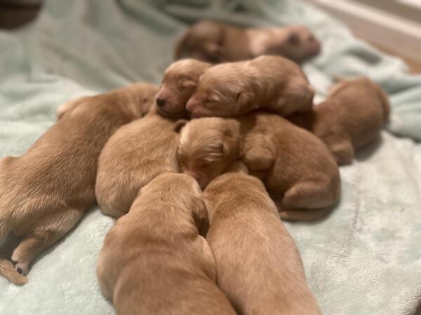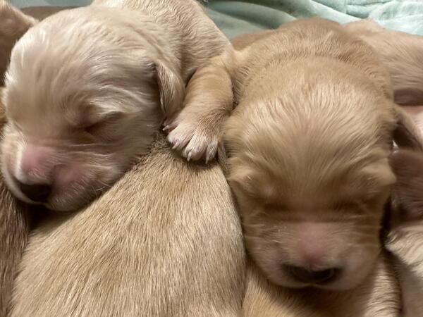 message shanna14 about this ad ONE MALE LEFT Born 12.31.23 We have 8 males and 2 females Field style goldens AKC limited registration (breeding rights are additional) Parents have genetics, ofa (eyes, heart, hips, elbows and thyroid) as well as pennhip testing completed! The dad Buddy has his OFA CHIC number! Pups come with a vet exam and first round of puppy shots. They are born and raised in our home and small hobby farm with love. Message today to meet them! Fowlerville MI |