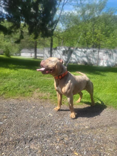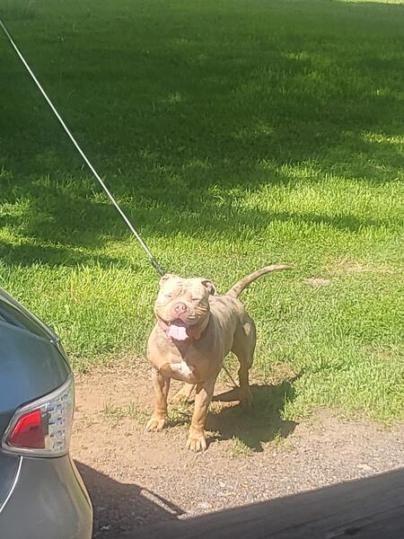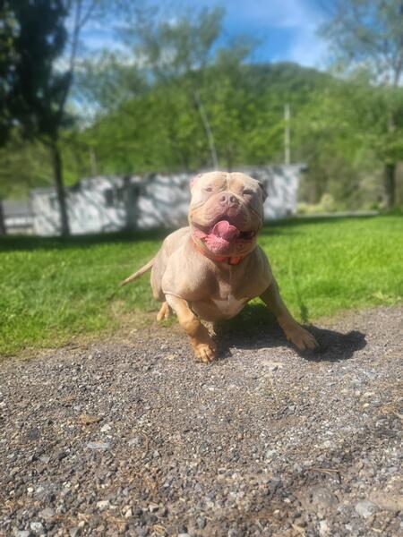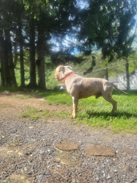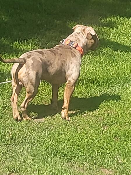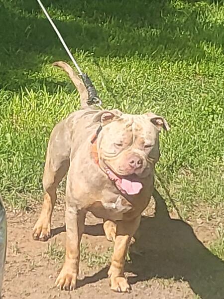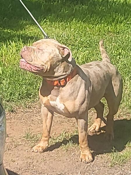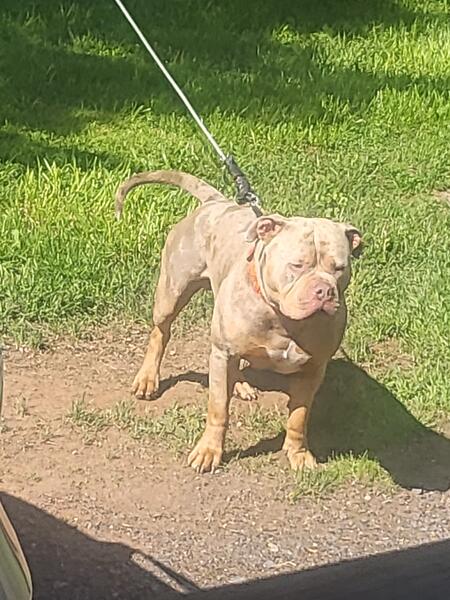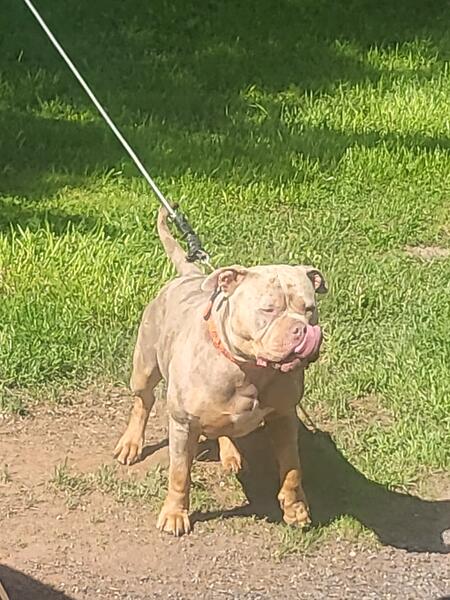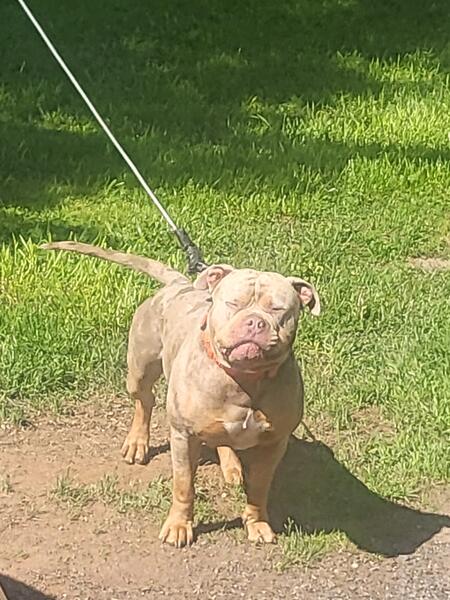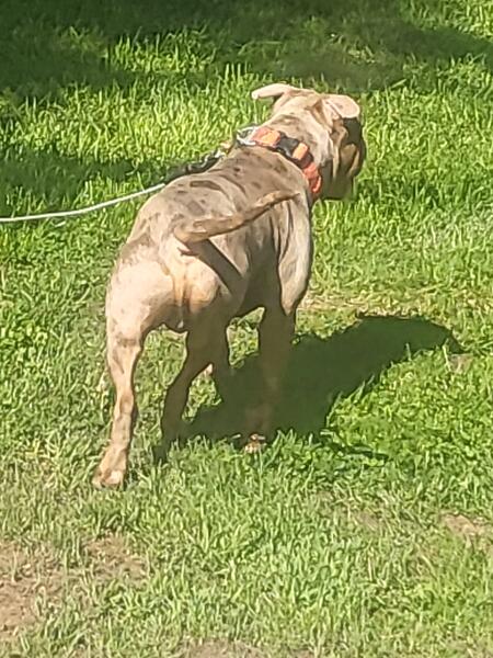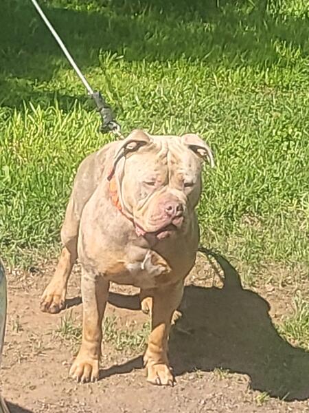message paws03 about this ad I have a clean and correct 2 yr old classic built American Bully. He's a Lilac tri Merle. 2x Grch's on his ped. Big giant sweet heart. Great temperament and beautifully marked. ABKC registered. 800 stud fee and open to 1 pup back deal on him. Has a big dome about 20 to 21 inches atw and 80lbs |