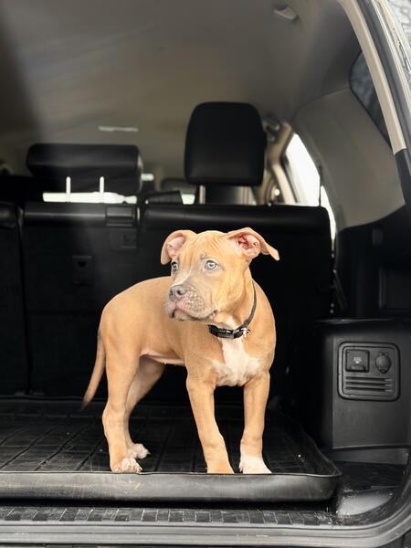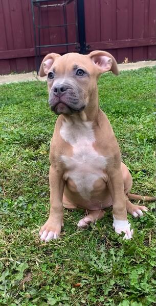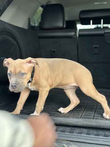 American Bully puppy. Turned 4 months starts leaning, very friendly and fast listener
