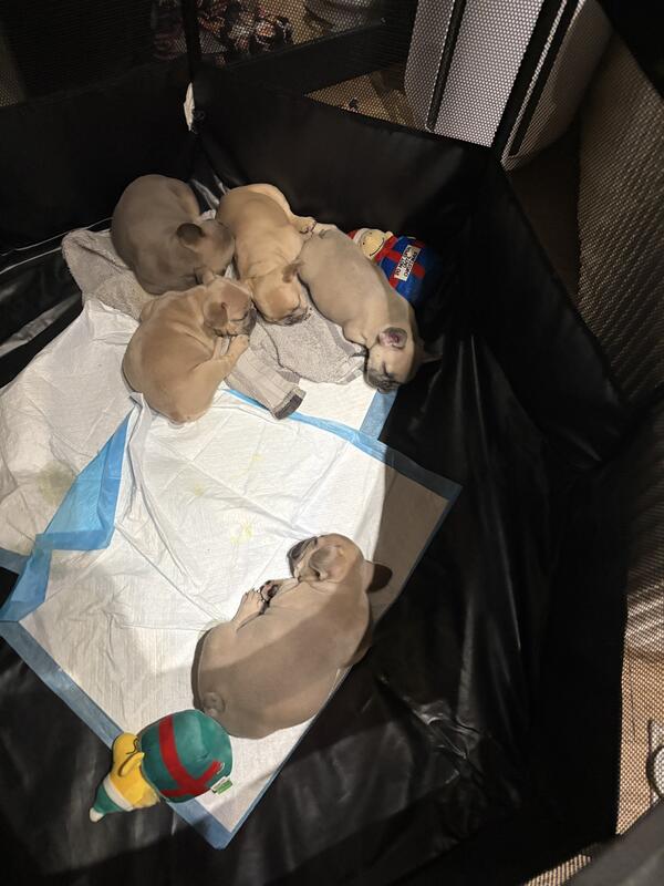 message shyblue720 about this ad French Bulldog Puppies Fluffy Carriers Born on November 12, 2025. We have a beautiful litter of French Bulldog puppies looking for loving, committed forever homes. These puppies are fluffy carriers and are being raised with lots of hands-on attention in a family environment. Pic of Sire and Dam above. Father was a full fluffy. Puppies come from a great bloodline. Paperwork and bloodline can be provided. Puppy Details: Price: $2,500 each Availability: 2 boys & 2 girls Ready for pickup: In 2 weeks Raised around children and given daily interaction Eating puppy food and doing great These puppies are playful, affectionate, and social. They are accustomed to being handled frequently and are growing up with plenty of love and care, helping them develop sweet, confident personalities. Health Care: Puppies have been dewormed They will be up to date on vaccinations at the time of pickup What were looking for: We are hoping to place these babies in responsible, loving homes where they will be cherished as part of the family. We would also love to stay in touch with their new families, and if possible, allow their siblings to reconnect occasionally for future playdates. Reservation Info: A deposit is required to reserve a puppy Serious inquiries only, please If youre interested, feel free to message with a little about yourself and the home you can provide. Were happy to answer questions and help ensure each puppy finds the perfect match. message shyblue720 about this ad |