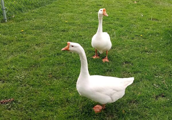 message wookiemom about this ad Buttercup and Gertie are free-roaming, tame, and come when called. This breed are great weeders and good early warning system if they see something on your property. They are currently laying large eggs (3 to 4 chicken-sized eggs I must reduce my livestock because of my husbands health. They come with feed, diapers and cute metal signs. Baby chicks are $24 each and I am asking $30 each. plus extras. |