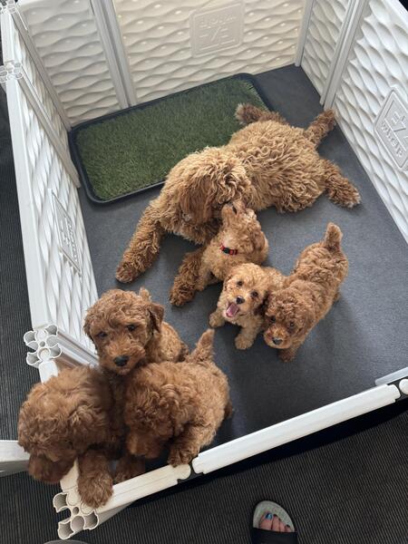 message brunsonts about this ad Red AKC Moyen poodle for stud (25 lbs Hes just sired his second litter. They are adorable! The fee would be 1,000. He has been DNA tested and is 100% Poodle. He has the best demeanor - hes sweet, gentle and shy. Text me at 407-575-5951 or email.me at PrimoPoodles@gmail.com. Thank you! The last 2 photos are from his second litter! |