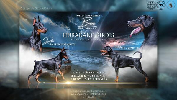 message egle about this ad Who dreams of a Dobermann, they are waiting for you! Serious people only Puppies are suitable for exhibitions, sports and active leisure time or as a pets! Will have FCI/LKD pedigree. EU passports, microchips. Dewormed, vaccinated according to age. Not cropped/docked. Excellent pedigree: Sire: C.I.B. TAHI-RME iX (Legend Goes On Astor & Tahi-Rme Jameerah) Dam: C.I.B VIA FELICIUM NIKITA (Via Felicium Zepter & Sant Kreal Jagerdy) Located in Lithuania. Puppies will be ready to leave from 2025.03. Please contact us for more info: WhatsApp, Viber +37067185055 Email: hurakanosirdis at gmail.com |