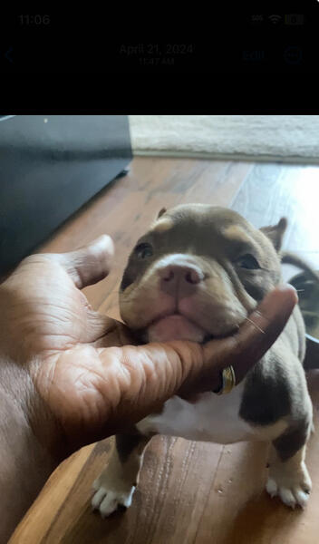 message relentless about this ad Micro 2 year old Male American bully chocolate Tri 12 inches at withers picture are recent located in can be negotiable 205 542 0831 |