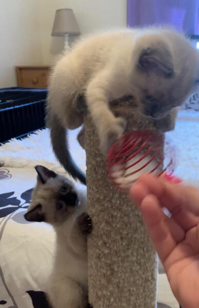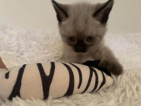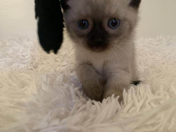message getmodern09 about this ad Adorable Siamese litter born 8/22/23. Ready for adoption after 10/17/23 1 female currently available. Mother is a Seal Point and dad is a Blue Point. I have one female Seal Point Siamese available and she is absolutely adorable. This little cutie is very outgoing, cuddly and playful. She likes to be carried like a baby and her favorite toys are dangly toys. She is currently 7 weeks old and is already litter trained and eating solid food. She is used to other cats and our doggy as well as teens and kids. All pets are raised indoors in a clean environment. She will be TCA registered and have 1st round of vaccine. |