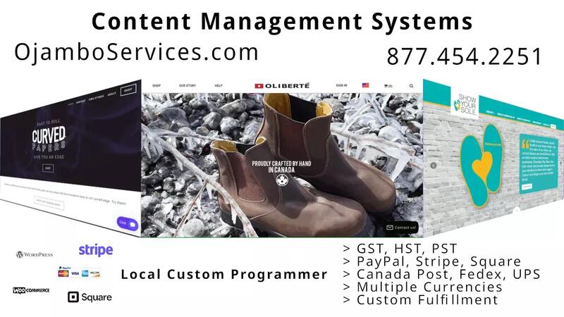 message ojambo about this ad Web CMS: Ecommerce CMS SOLUTIONS: From Simple Blog to Complex Ecommerce. Accommodate Credit Cards, Cheques & Gift Cards. Unlimited Currencies, Carriers & Destinations. Canadian GST, HST & Provincial Tax Rates. Dependable Local Non-Outsourced Support. Dependable content management services at PHONE: 9742; For Free Customized Quote |