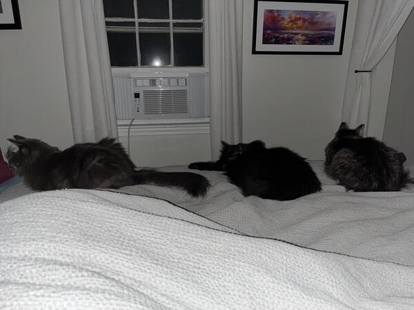 message jgazelle13 about this ad My 3 beautiful cats need a loving home! They are american long haired siblings and almost 5 years old and have been together since birth and MUST go together, as they are bonded. They are up to date on their vaccines and have been indoor cats since birth. About the Cats All three of them love to cuddle, love to be lap cats, and will even sleep with you if you allow cats on your bed. They are such affectionate cats, all with a silly playful side and love their toys! Nutmeg (black and tan mixed) is the only female of the group. She is about 7.5 lbs and such a sweet, timid cat. She is definitely the most shy of the group - as the boys are not shy at all! Clover (black cat) is the silliest of the bunch! He loves boxes and bags and is also the most cuddly of the group. He is about 8.5 lbs. Pepper (gray cat) also loves to cuddle and will love to sit with you or on you! Pepper has a special prescription diet that he needs to be on as he will get bladder crystals if not. The other cats can eat that food too, if you choose. This food is a bit more expensive than the cheapest of cheap cat foods, but it's cheaper than the expensive brands, so its not that bad. He is about 10 lbs. Toys & Furniture I have cat scratchers, a cat tower, 3 wall cat hammocks (they love these cat beds, and so many toys that they love and you can take as much or as little of things as you want! message jgazelle13 about this ad |